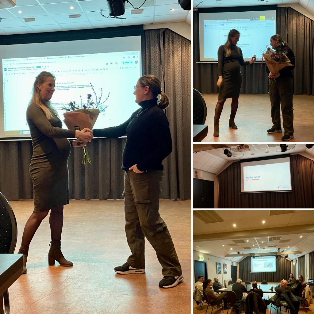 Na een lidmaatschap van 25 jaar waarvan 17 jaar in het bestuur actief te zijn geweest, hebben we afscheid van Saapke als bestuurslid. Het eerste jaar fungeerde Saapke nog als algemeen lid, maar meteen daarna al als voorzitter. Daarna zelfs een aantal jaar voorzitter en penningmeester gecombineerd en de laatste jaren nog als penningmeester. Wij bedanken Saapke voor alle jaren inzet en betrokkenheid bij de club. Als onderscheiding krijgt Saapke een bronzen speld vanuit het KNHS met daarnaast een bos bloemen en een lekker pakket van de Zuivelhoeve.